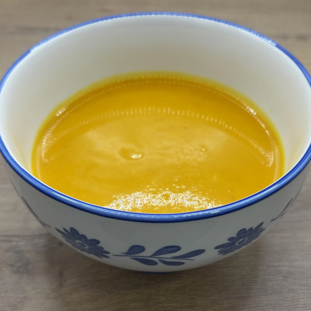 Crema de calabaza con zanahoria, cebolla, patata con especias