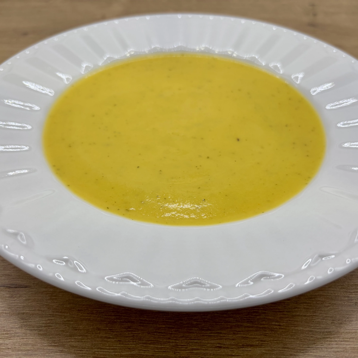 Crema de patata, zanahoria, calabacín, puerro, cebolla y aove